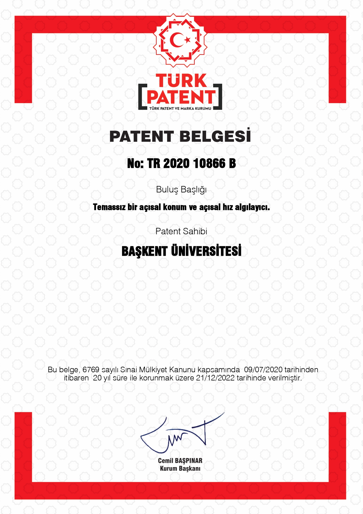 Prof. Dr. Sedat Nazlıbilek, a faculty member of our Department of Electrical and Electronics Engineering, has been awarded a patent and a gold medal for his invention titled "A Non-Contact Angular Position and Angular Velocity Sensor." We congratulate our faculty member on this achievement.